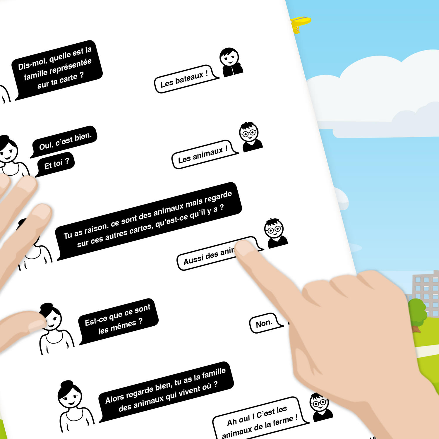 L’élève doit pouvoir produire, reformuler, manipuler le langage dans des activités interactives et stimulantes (jeux de catégorisation, reformulations, devinettes, récits, etc.)