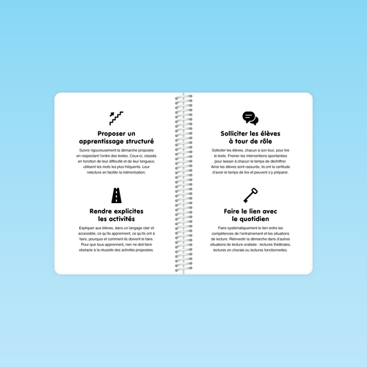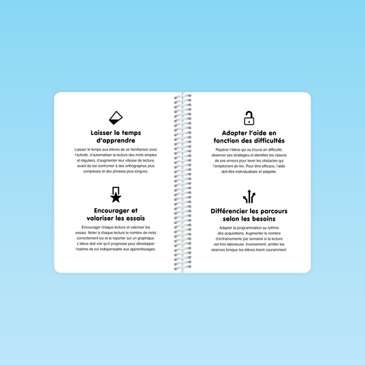 Compatible avec toutes les méthodes de lecture, un entraînement régulier à la lecture à voix haute pour automatiser l’identification des mots et renforcer la compréhension des textes au cycle 2.