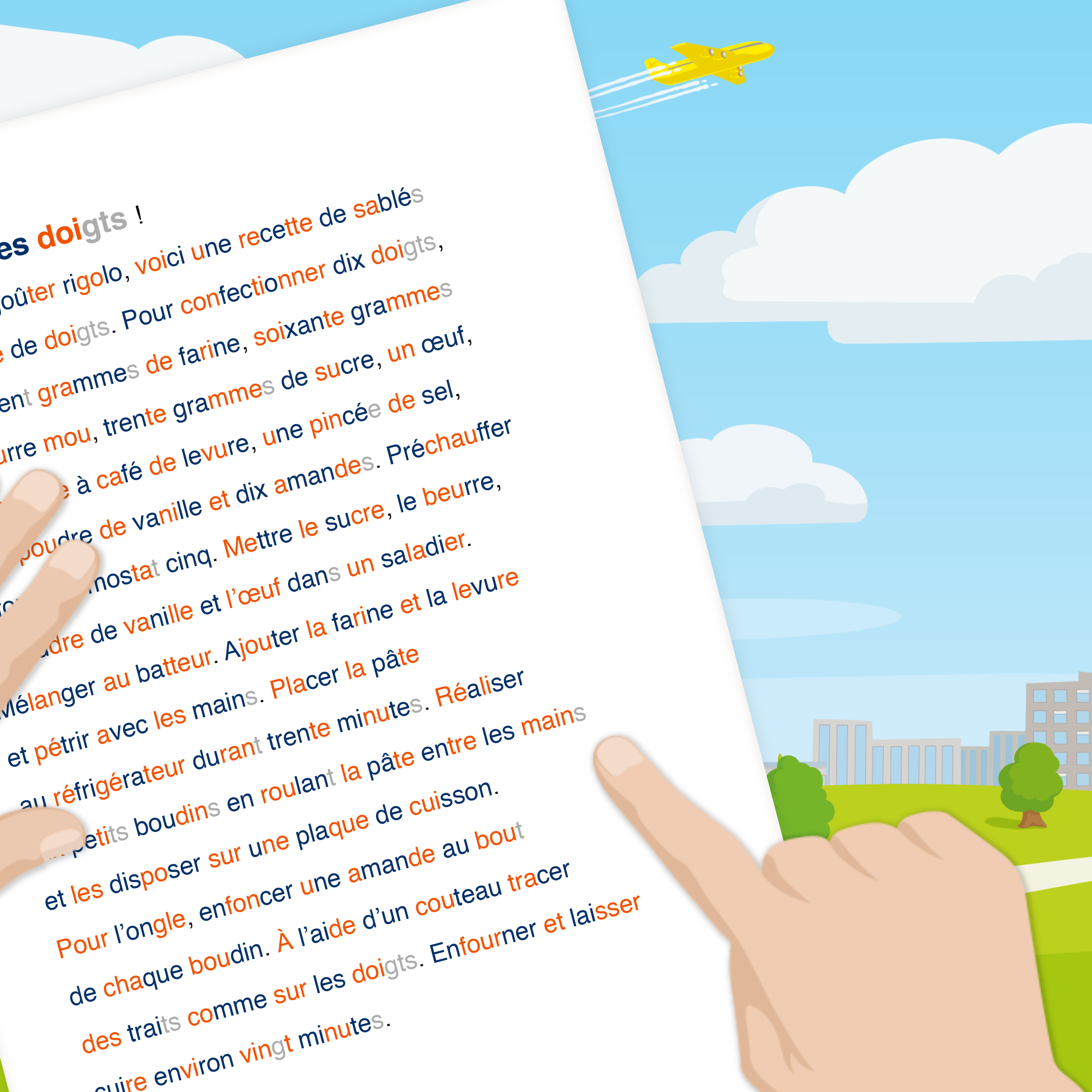 • 1 texte en deux versions pour travailler la fluence (classique & syllabes en couleurs).