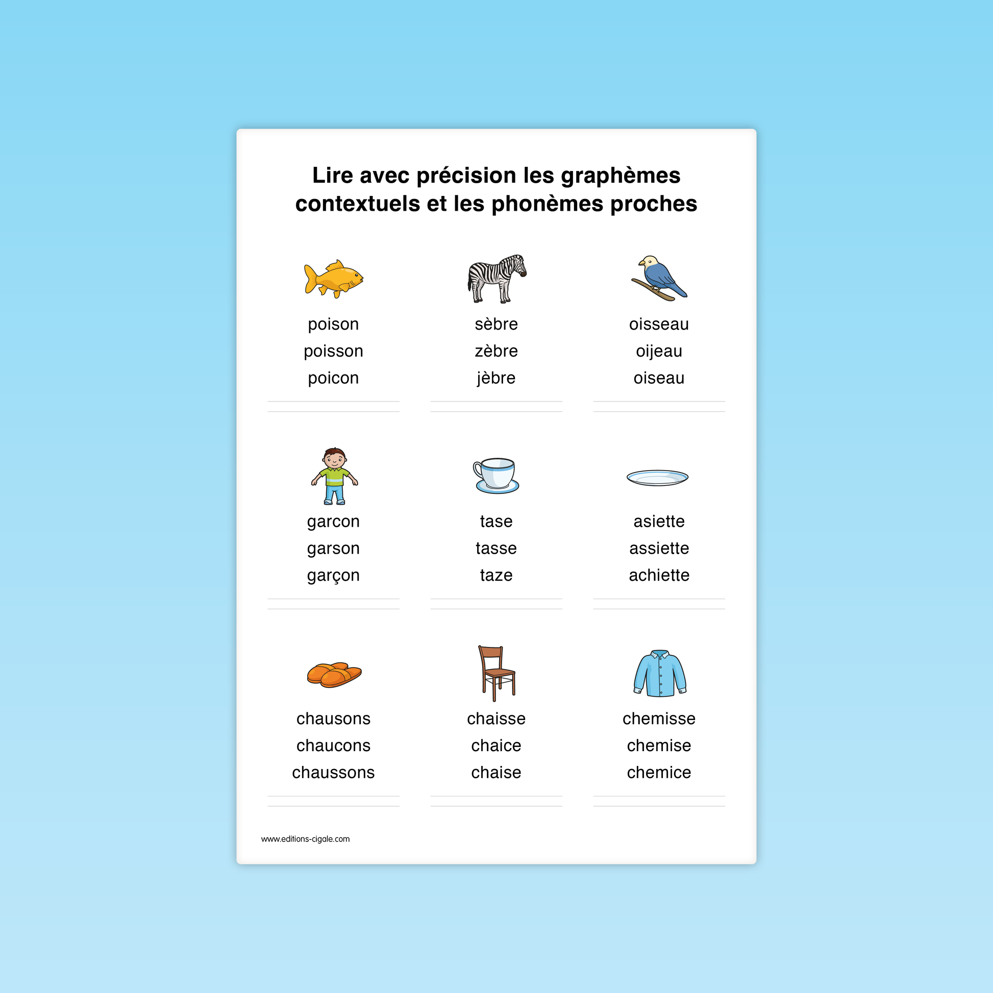 Parce que lire ne consiste pas seulement à décoder, mais à lire avec exactitude. Ces fiches développent la vigilance orthographique et la précision visuelle indispensables pour éviter les confusions entre mots proches.