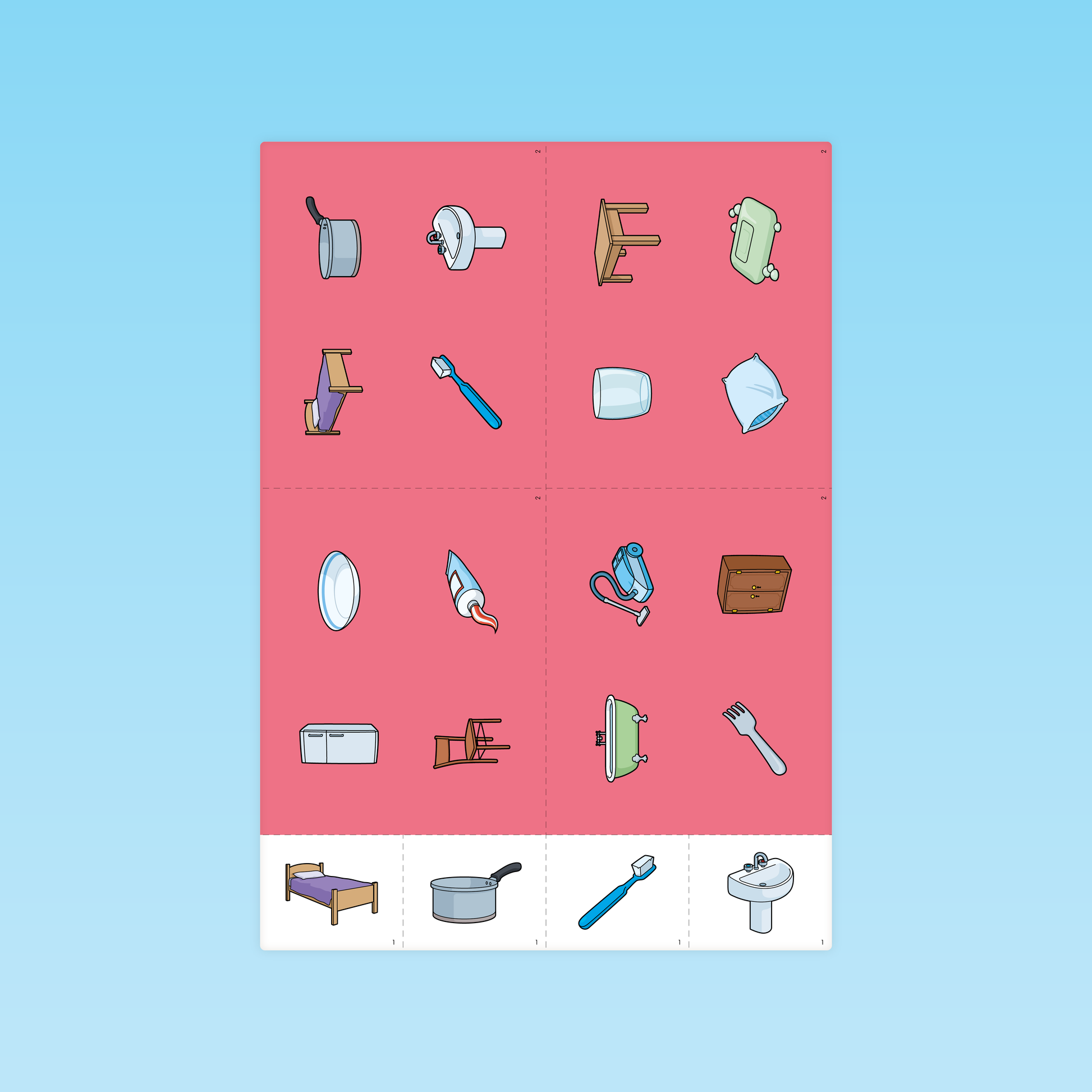 Le Loto de la maison est un jeu de langage conçu pour enrichir le vocabulaire des objets du quotidien dès la petite section. À partir de cartes illustrées et de planches de jeu, les élèves observent, nomment et associent différents objets familiers : lit, casserole, lavabo, aspirateur ou canapé. Dans un atelier de langage guidé par l’enseignant, les enfants prennent la parole pour identifier les images et retrouver leur emplacement sur la planche. Cette activité ludique et structurée favorise la mémorisation du lexique tout en développant l’attention, l’observation et la participation orale des élèves.